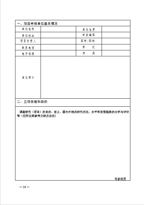 (一)课题组须认真填写《中国科协学会服务中心项目申报书》。课题申请单位须对《项目申报书》内容进行审查,填写审核意见,加盖单位公章,法定代表人签字。